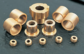 FU-1铜基含油轴承,是以锡青铜粉末为原料,经过模具压制, 在高温中烧结后整形而成。它的基体有细微、均布的孔隙,经润滑油真空浸渍后形成含油状态。该产品具有短期不加油润滑,使用成本低,内外径尺寸可变化等特点,适应于中速、低载荷的场所使用。产品已广泛应用于家用电机、电动工具、纺织机械、化工机械、汽车工业和办公设备等场合。
